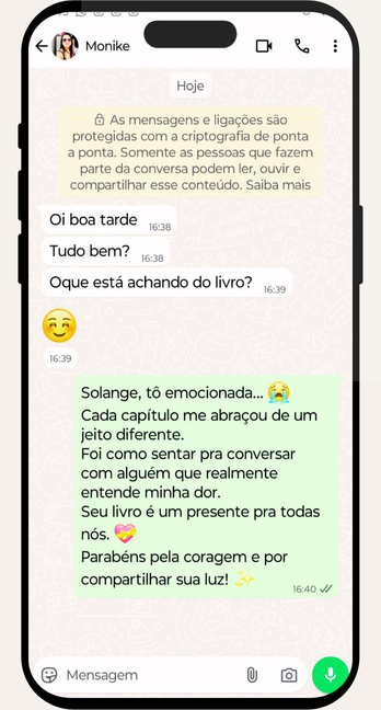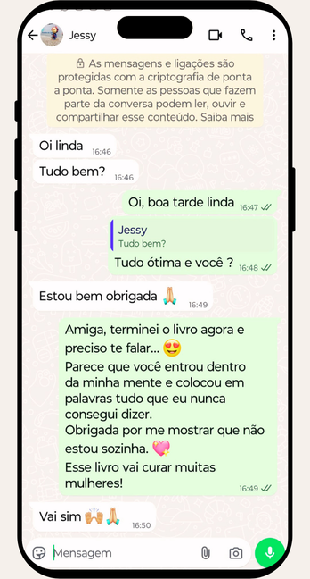 Você terá acesso a um Grupo Exclusivo no WhatsApp, comigo e com outras mulheres que também decidiram renascer.
